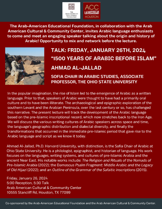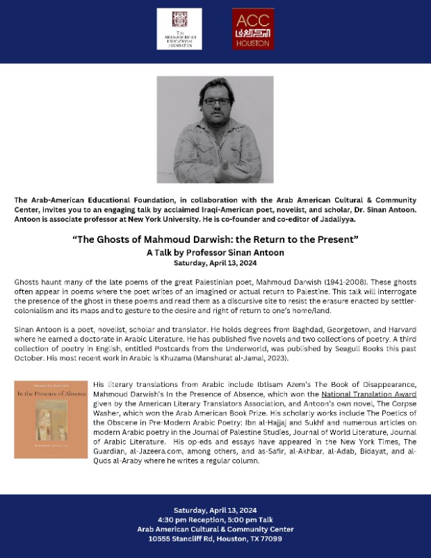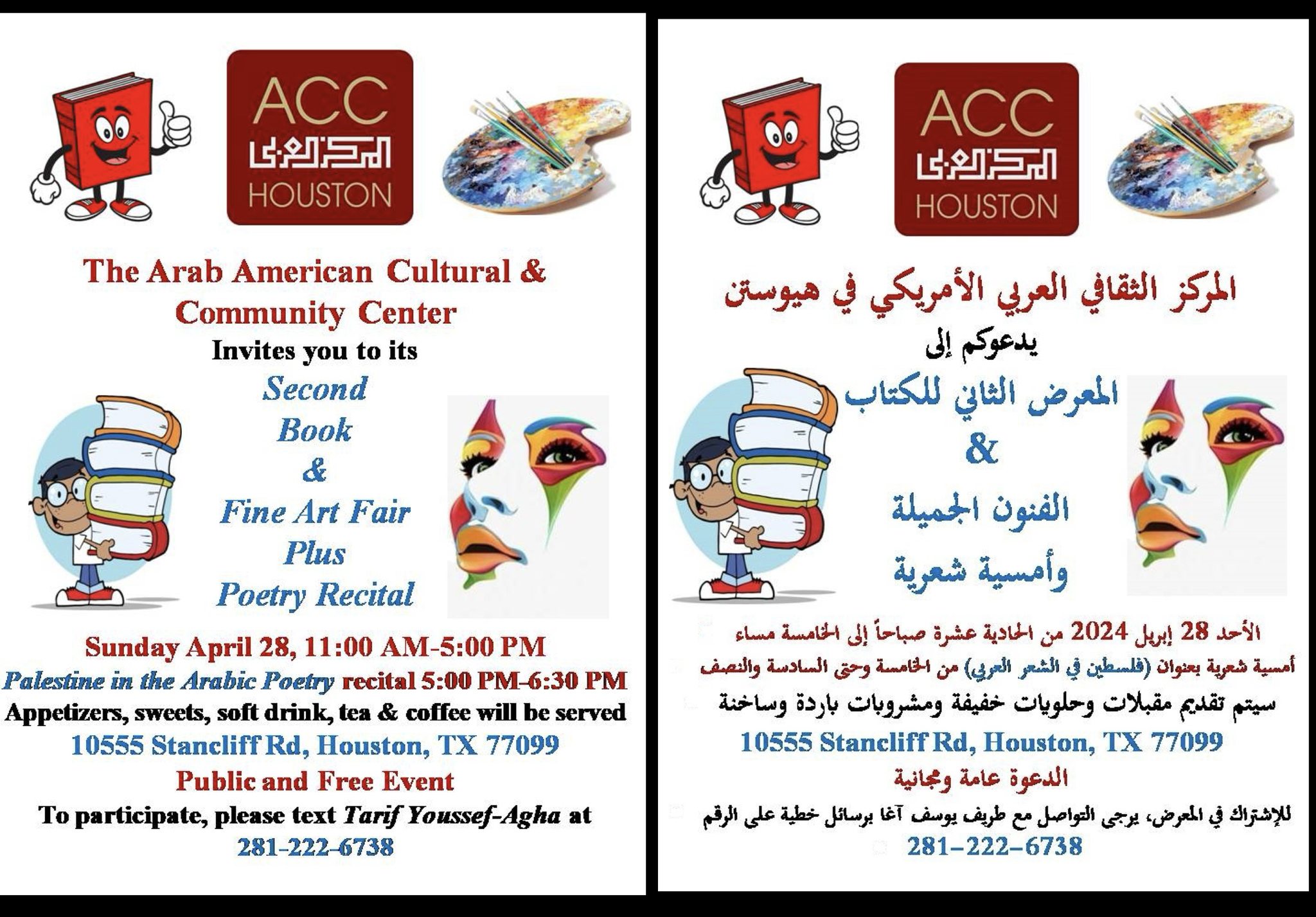 Location: Arab American Community and Cultural Center, 10555 Stancliff Rd, Houston TX 77099